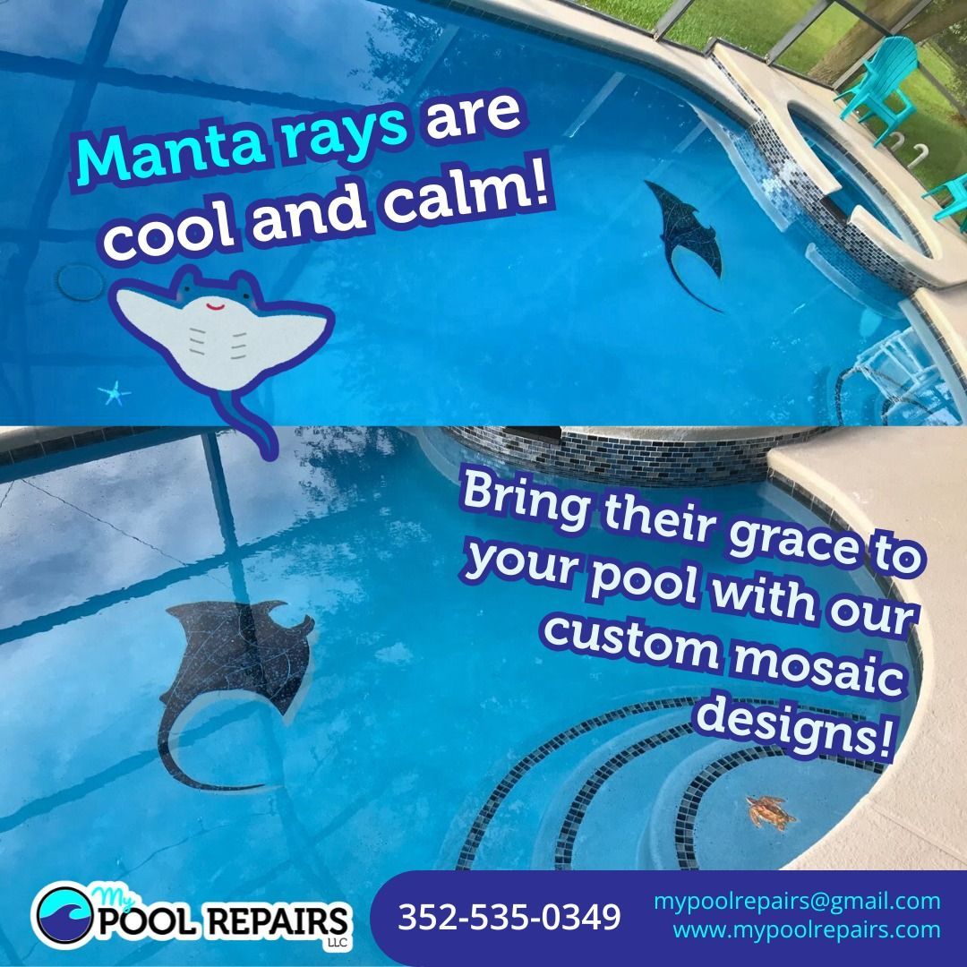#MantaRayMagic #PoolDesign #FloridaPools #MyPoolRepairs #CustomPoolTile #BackyardInspo #TropicalVibes #PoolArt #SwimmingInStyle #ResurfaceAndRevive