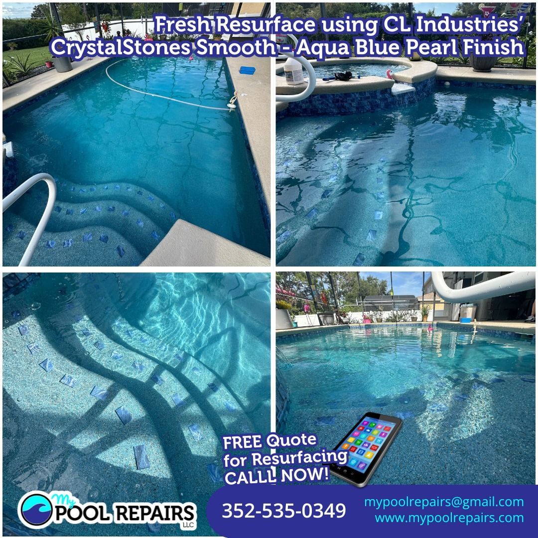 #MyPoolRepairs #PoolResurfacing #CLIndustries #CrystalStones #AquaBluePearl #CentralFloridaPools #PoolTransformation #BackyardUpgrade