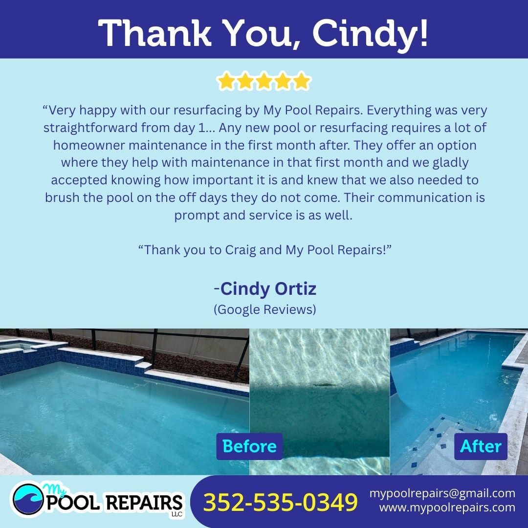 #CustomerReview #PoolResurfacing #HappyClients #MyPoolRepairs #FloridaPools #BeforeAndAfter #QualityWork #ClearCommunication #PoolCareExperts
