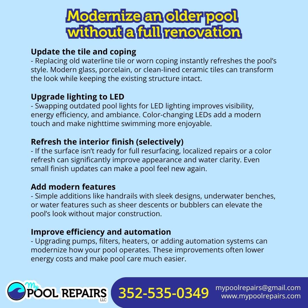 #MyPoolRepairs #PoolModernization #PoolUpgrade #PoolRemodelIdeas #FloridaPools #PoolDesign #BackyardRefresh
